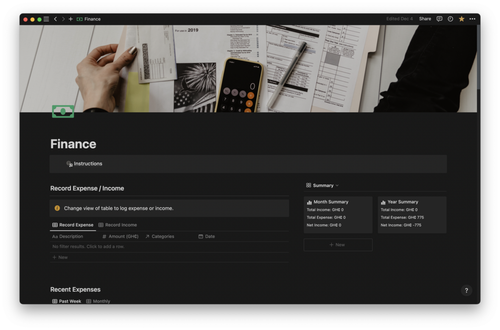 A NOTION FINANCE TRACKER TEMPLATE